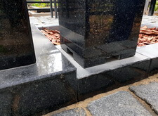 Затем мы застелили территорию участка геотекстилем, обеспечив брусчатке защиту от сорной травы на долгие годы вперёд. Параллельно у основания памятника был установлен небольшой гранитный цветник.