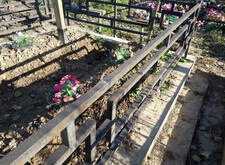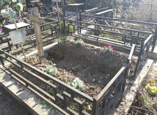 В данном случае нам надо было из самой обычной могилы, периметр которой был обнесён простой оградкой, сделать опрятное и красивое место захоронения с обильно украшенным гравировками надгробьем. Так выглядел участок на момент начала работ.