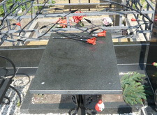 Состояние могилы после небольшого цикла работ. Покрашена лавка и ограда, обновлены розочки на ограде, помыты памятники и гранитный цоколь, убраны цветники и сорняки, почищена мраморная крошка. На могилу возложили свежие цветы.