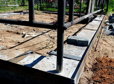 Ранее возведённый деревянный каркас залили бетоном. Выждав достаточное время для того, чтобы раствор окончательно схватился, мы принялись сваривать металлический периметр, внутрь которого и будет уложена брусчатка.
