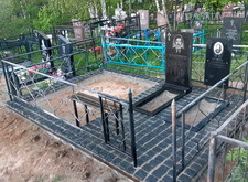 В данном заказе нам предстояло переоформить уже существующее место захоронения. Клиент пожелал облагородить могилу, выложив её территорию брусчаткой, заменив лавочку со столиком и обновив памятники. Обговорив все детали предстоящей работы, мы осмотрели участок. На нижеприведённых фотографиях отображено изначальное состояние места захоронения.
