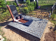 Начинаем собирать гранитное надгробье, предварительно выставив цветник.