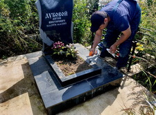 Затем мы перешли к надгробью: протёрли памятник, обновили надпись на нём, привели в порядок цветник и основание мемориала.